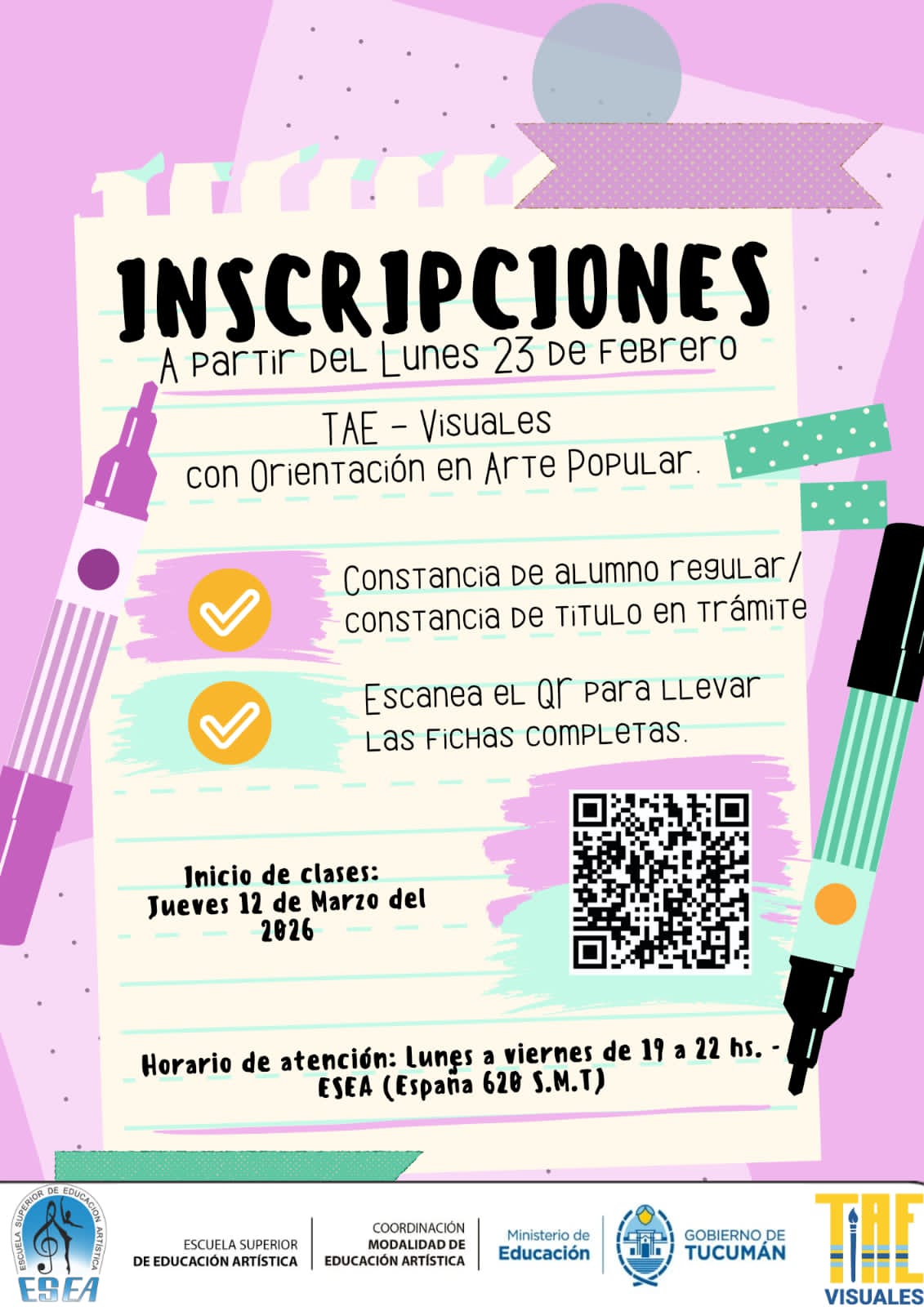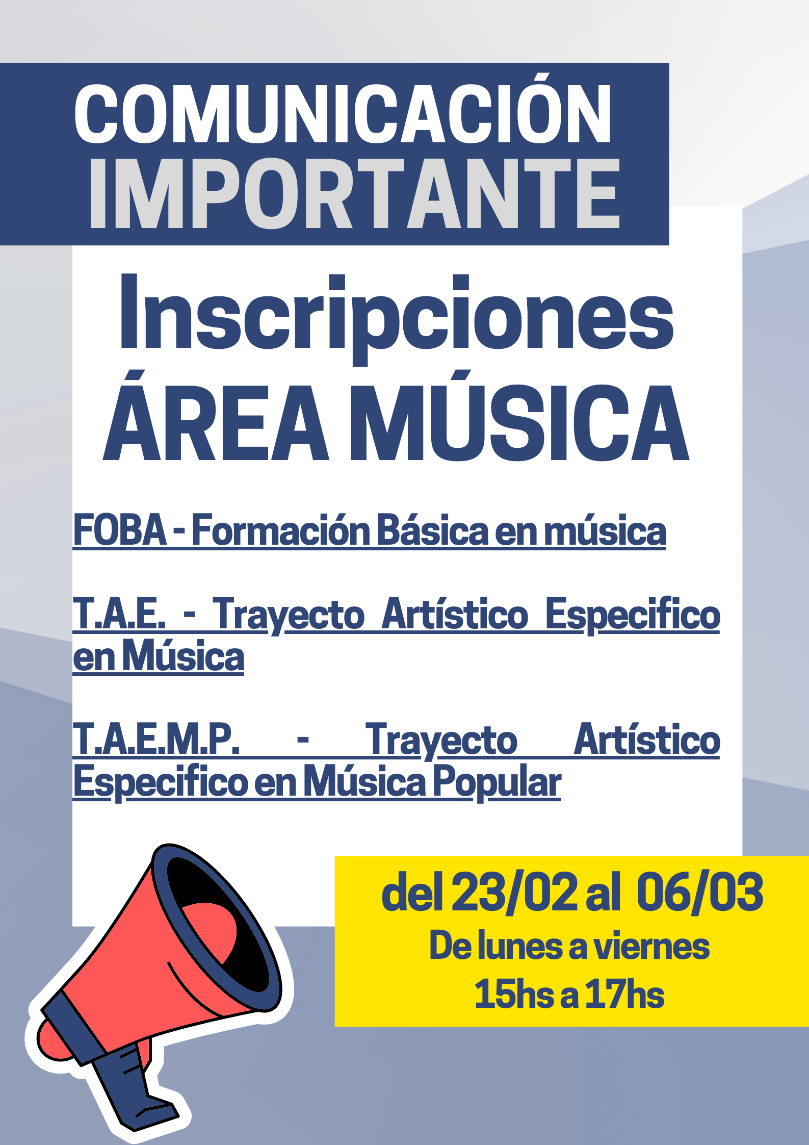 INSCRIPCIONES 2026- MÚSICA. 23 febrero, 2026 por Gabriela Llobril Distintas opciones de talleres en ESEA